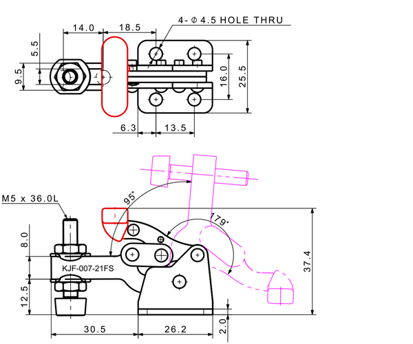 70 56 179˚ 95˚ M5 x 36.0L 14 U Short Flange Low