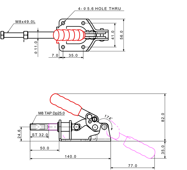 140 303 174˚ M8 x 49.0L 32 Flange
