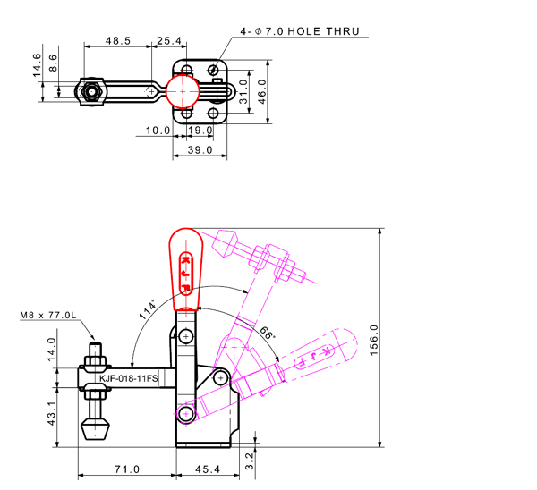 180 466 66˚ 114˚ M8 x 77.0L 48 U Short Angle Low