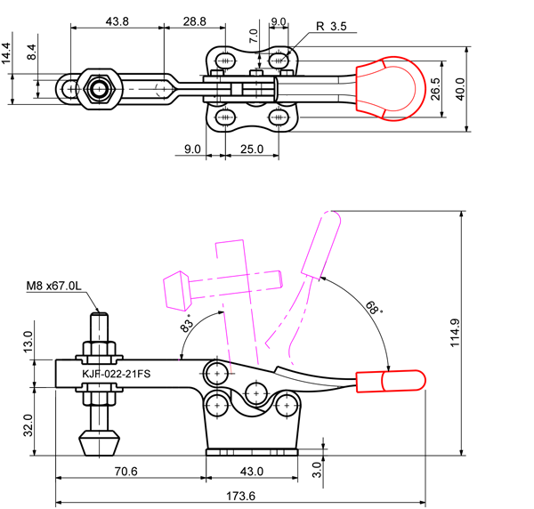 220 250 68˚ 83˚ M8 x 67.0L 44 U Short Flange Low