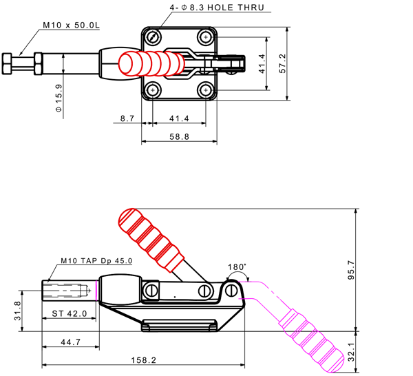 400 600 180˚ M10 x 50.0L 42 Flange