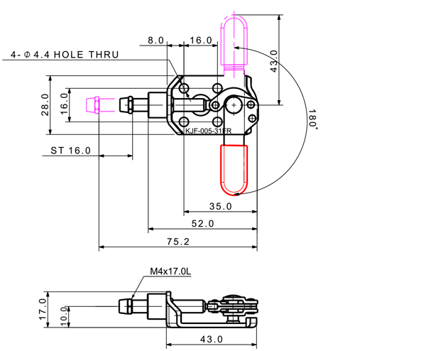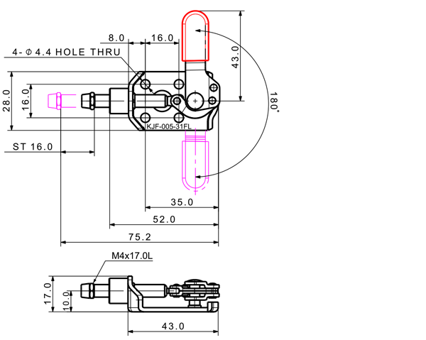 50 52 180˚ M4 x 17.0L 16 Flange