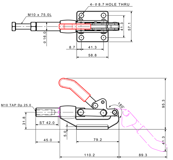 400 641 180˚ M10 x 75.0L 42 Flange