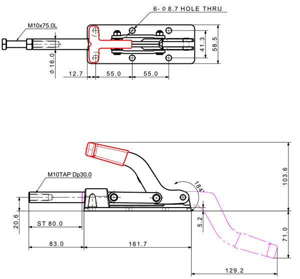 Holding Capacity(kgf) Weight(g) Handle Move Spindle Supplied Rod Stroke(mm) Base Type 2D 3D PDF 주문